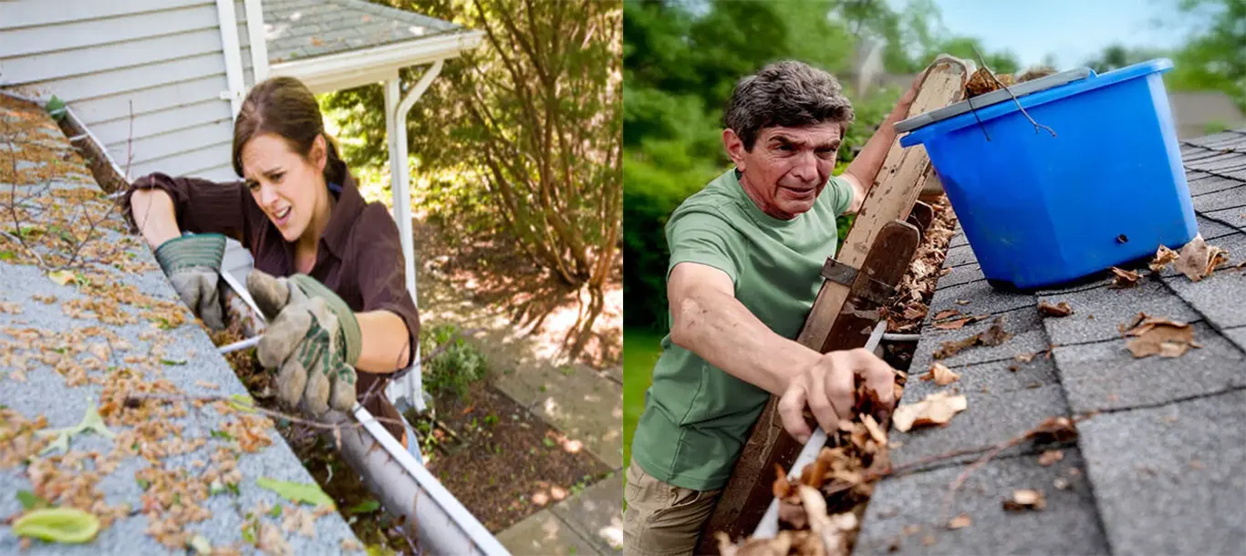 Clogs are the most common cause of sagging. When there is an accumulation of leaves and debris in the gutters, the water has nowhere to flow. This backup can not only cause water overflow, but the backup can damage the gutters. The soggy leaves and debris weight will cause the gutters to sag and cause stress to the gutters. Gutters were not designed to handle this extra weight, and sagging is often the result. Squeegeez Gutter Cleaning is the Answer